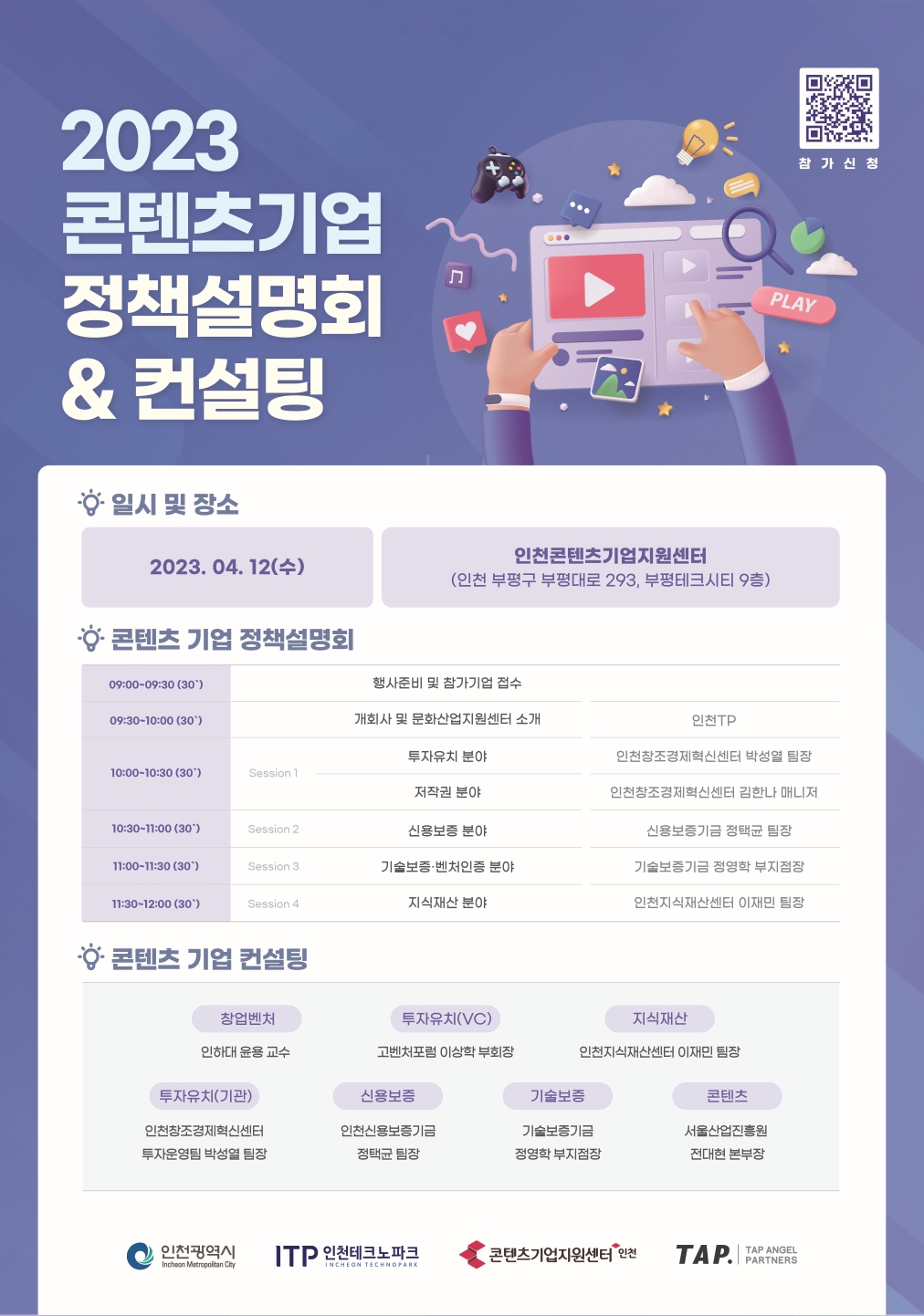 · 인천 관내 콘텐츠기업, 설명회 참석 및 설문완료 기업을 우선 지원합니다.