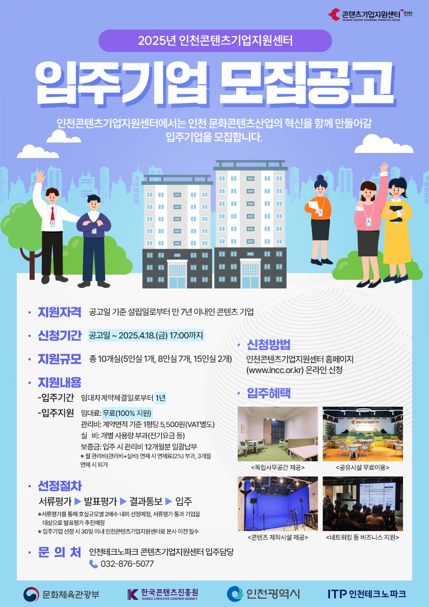 ❍ 공 고 명 : 2025년 인천콘텐츠기업지원센터 입주기업 모집공고